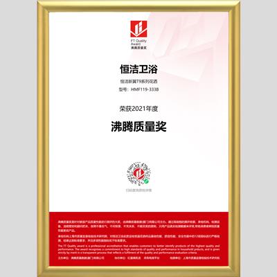 獎 項:沸騰質(zhì)量獎-恒潔新翼T9系列花灑HMF119-333B