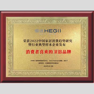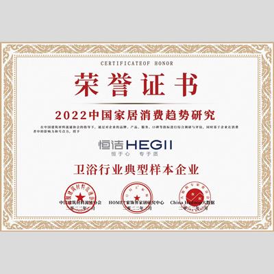 獎 項:2022中國家居消費趨勢研究-衛(wèi)浴行業(yè)典型樣本企業(yè)