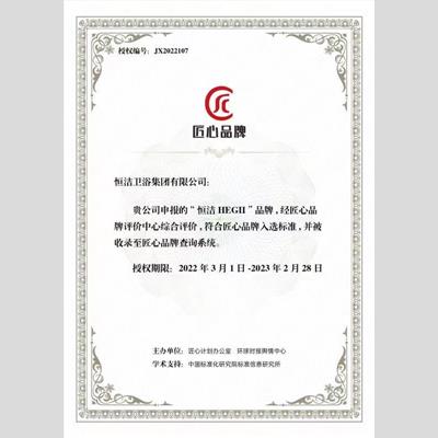 獎 項:2021年度匠心品牌——恒潔